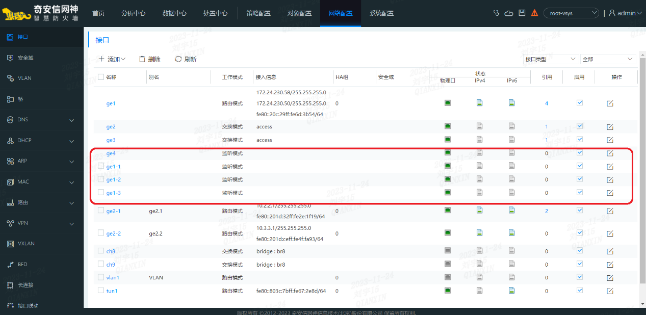 支持多接口可旁路的病毒文件传输监听检测方式,可并行监听并检测多个接口、多个网段内的病毒传输行为,用于高可靠性要求的旁路应用环境多个接口可设置为监听模式,满足高可靠性要求的旁路应用检测环境