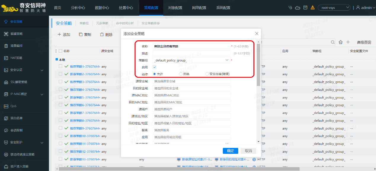 配置安全检测策略包括防病毒、入侵防御、漏洞防护等
