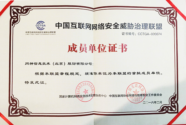 网神成为中国互联网网络安全威胁治理联盟首批成员单位